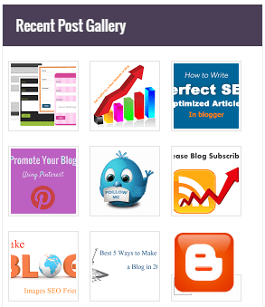 Do you want to create a gallery in your blog? Then install this widget, which will create a beautiful gallery in your blog sidebar from recently published posts with attractive “css” effects. With the help of this can get visitors attention and your blog will get more pageviews.